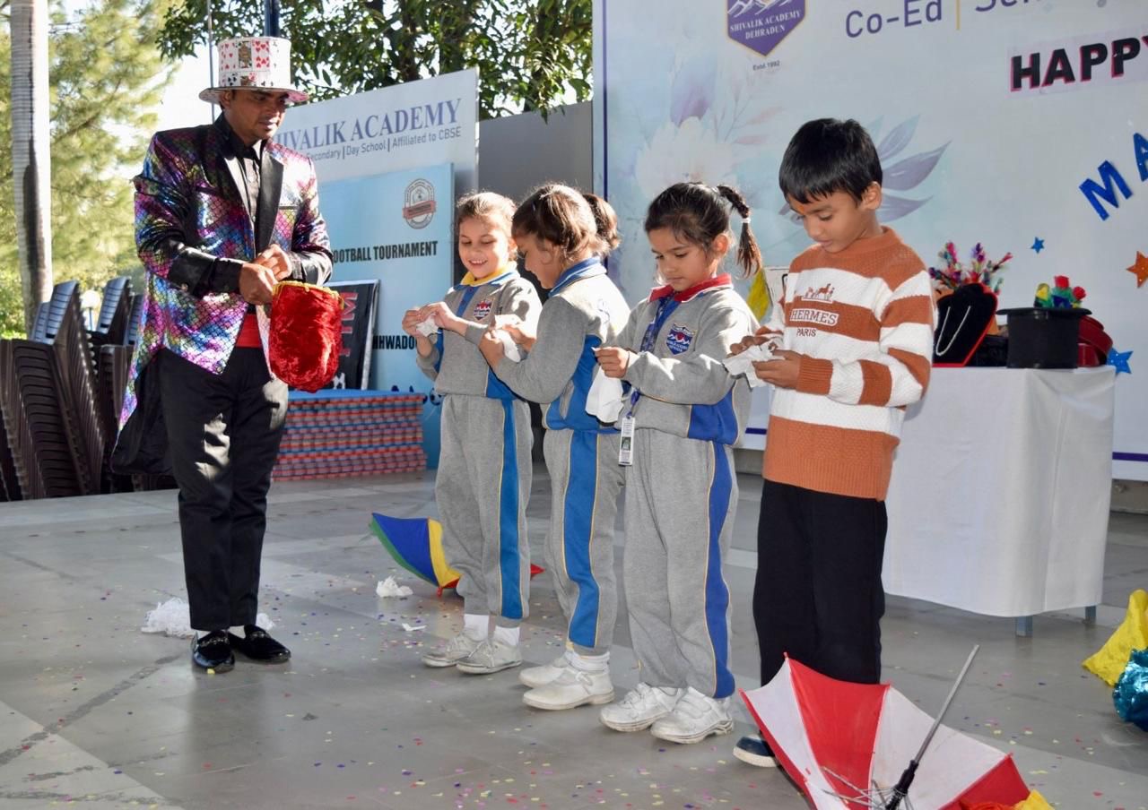 बाल दिवस के उपलक्ष्य में शिवालिक एकेडमी में बच्चों के लिए एक आकर्षक मैजिक शो का आयोजन किया गया। कार्यक्रम का संचालन मेरठ के प्रसिद्ध जादूगर प्रिंस द्वारा किया गया, जिन्होंने अपनी अद्भुत जादूई कलाओं से बच्चों का मन मोह लिया।