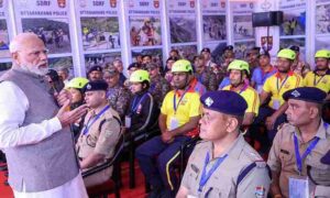 उत्तराखंड में प्राकृतिक आपदा से हुए नुकसान का जायजा लेने पहुंचे प्रधानमंत्री श्री नरेंद्र मोदी ने गुरुवार को जौलीग्रांट एअरपोर्ट पर आपदा राहत कार्यों की गहन समीक्षा की। प्रधानमंत्री ने इस दौरान अलग-अलग क्षेत्रों में आपदा से हुए नुकसान का विस्तार से जानकारी लेने के साथ ही राहत एवं बचाव कार्यों की ताजा स्थिति और भविष्य की चुनौतियों पर राज्यपाल ले.ज. गुरमीत सिंह (से.नि.), मुख्यमंत्री श्री पुष्कर सिंह धामी, केन्द्रीय राज्य मंत्री अजय टम्टा तथा राज्य के सांसदों सहित वरिष्ठ अधिकारियों के साथ विचार-विमर्श किया। प्रधानमंत्री श्री नरेंद्र मोदी ने धराली, थराली सहित राज्य के आपदा प्रभावित अन्य क्षेत्रों में संचालित राहत एवं बचाव अभियानों में एनडीआरएफ, एसडीआरएफ सहित राज्य सरकार के विभिन्न विभागों के प्रयासों की सराहना की और राहत बचाव कार्यों में जुटे राज्य व केन्द्र सरकार के संगठनों के कार्मिकों से भेंट कर उनके अनुभव साझा किए। प्रधानमंत्री ने आपदा पीड़ितों से भी मुलाकात कर उनका ढांढस बंधाने के साथ ही समुचित मदद का भरोसा दिलाया।